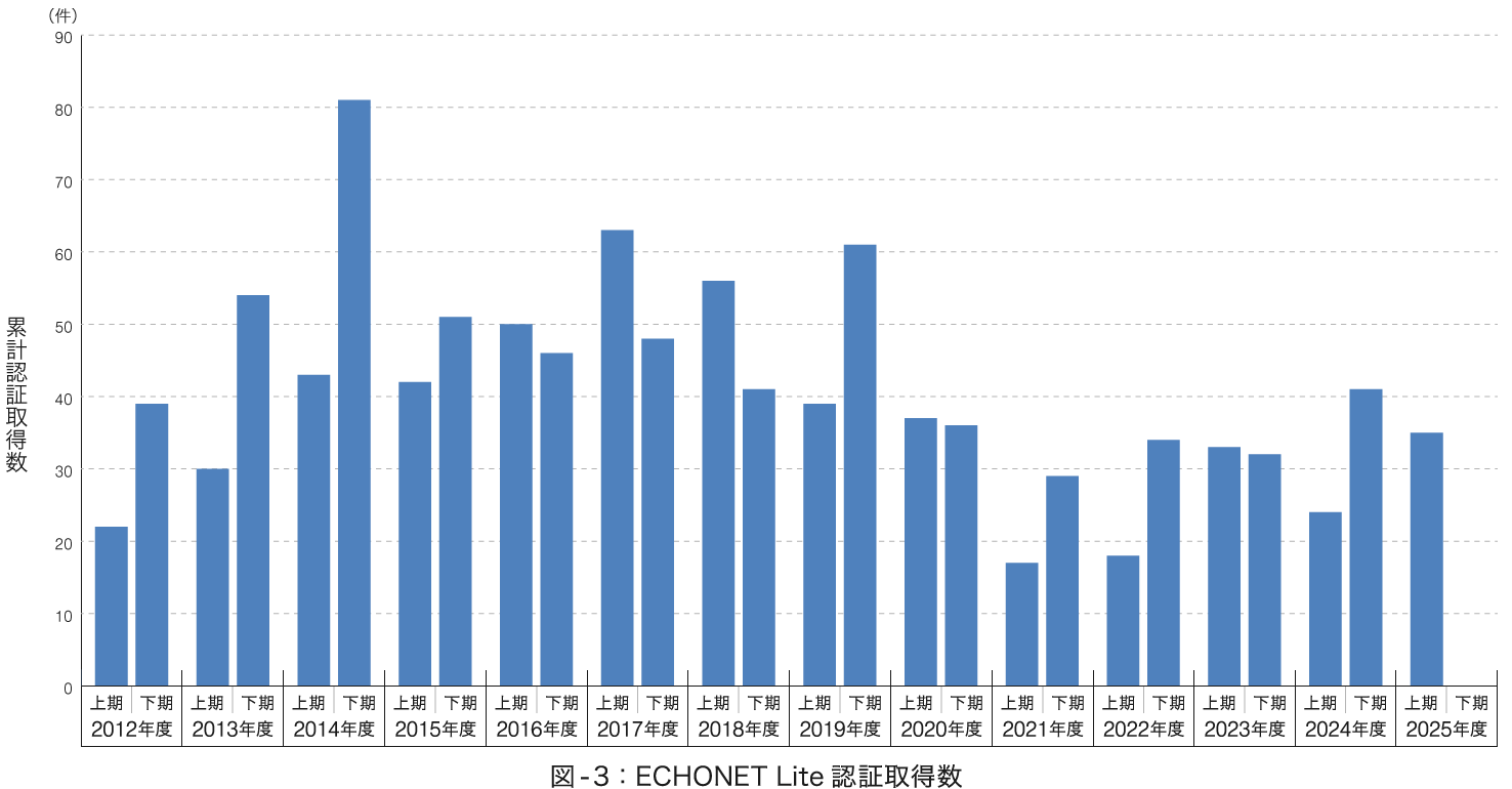 図-3は、ECHONET Lite認証取得数を年度ごとに示しています。